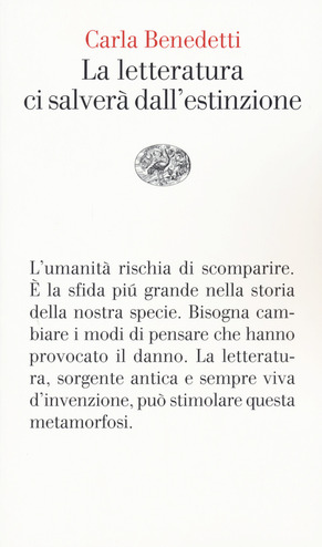 Da qualche anno ormai alcuni fra scrittori, scienziati e studiosi si chiedono perché mai la più grande sfida che l’umanità dovrà affrontare nel 21° secolo, cioè il cambiamento climatico, non è soggetto, protagonista, ambientazione e forma della maggior parte dei romanzi e delle altre opere artistiche. Se è così importante e ci minaccia così da vicino, perché gli scrittori non ne scrivono, gli sceneggiatori non ne sceneggiano e gli artisti non ne arteggiano? Se qualche anno fa se lo chiedeva Amitav Ghosh in quel bel saggio che è La Grande Cecità (Neri Pozza), oggi se lo chiede anche Carla Benedetti, nel suo libriccino La letteratura ci salverà dall’estinzione, che Einaudi ha pubblicato in quella bella collana, piccola e più che tascabile, intitolata le Vele. Il succo è sempre lo stesso (perché non ne scriviamo? siamo sicuri che letteratura e immaginazione possano davvero aiutarci? se sì, come?), ma i riferimenti sono diversi dai soliti, si va da Gunther Anders, filosofo da riscoprire, a Pasolini, passando anche per Moresco. Un paio di suggerimenti da tenere a mente ci sono: 1) leggere libri “ibridi” e 2) puntare alla pancia e alla gola, suscitando emozioni che difficilmente un freddo report scientifico potrà evocare.